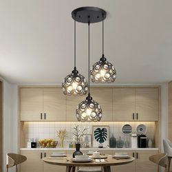 सरल बनाया हुआ लोहे का लिविंग रूम चेंडेलियर रचनात्मक तीन सिर क्रिस्टल बार लैंप के साथ नेतृत्व वाले वर्ग आकार समायोज्य ऊंचाई काले